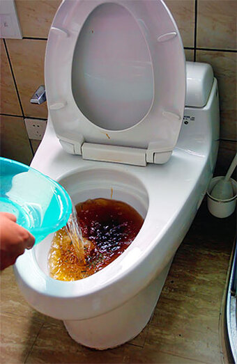 Restoration of proper flushing pressure by clearing partial clogs in the toilet trap or sewer junction that cause slow drainage or incomplete flushes.